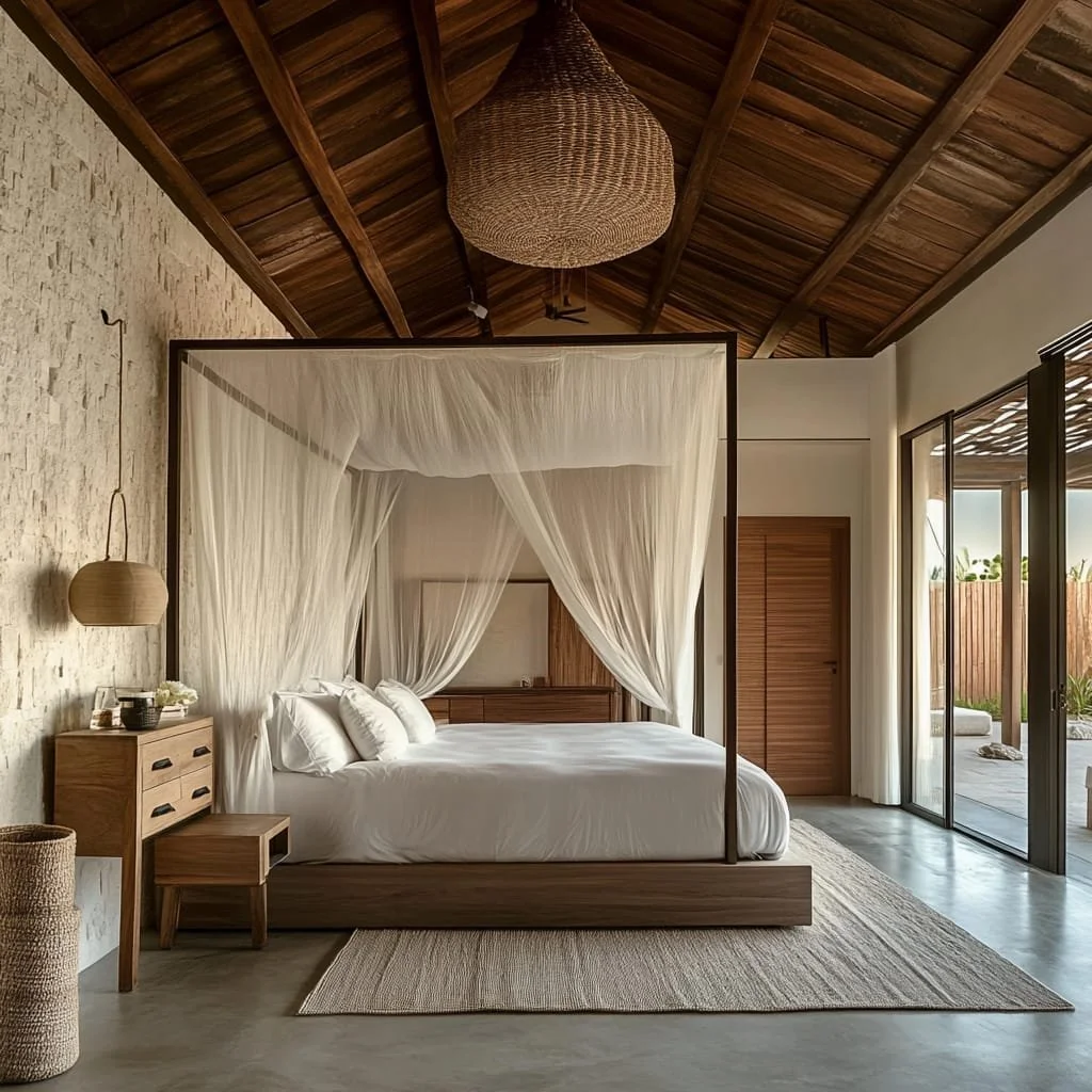 Differences: The focus is on simple, natural materials with minimal design. This is a classic eco-chic choice with fewer decorative accents and a functional, no-frills approach.